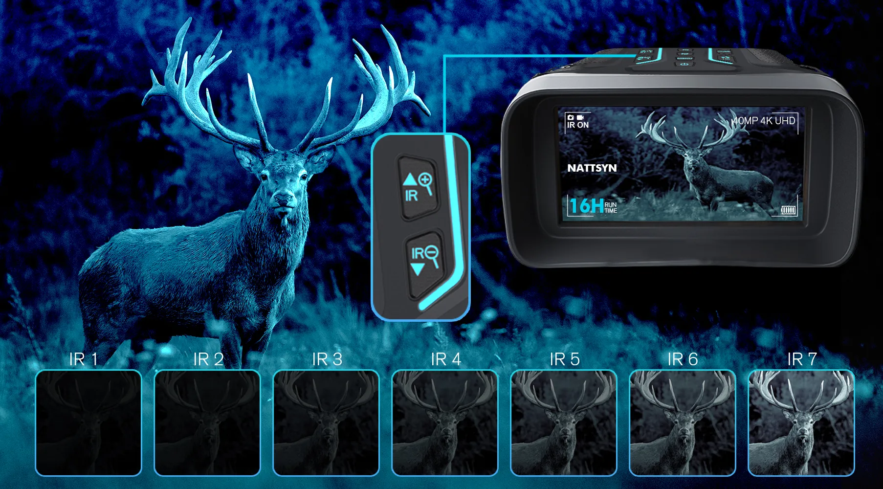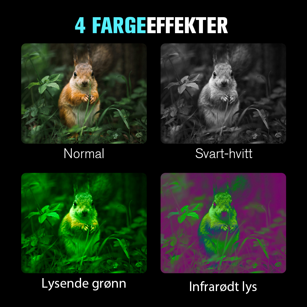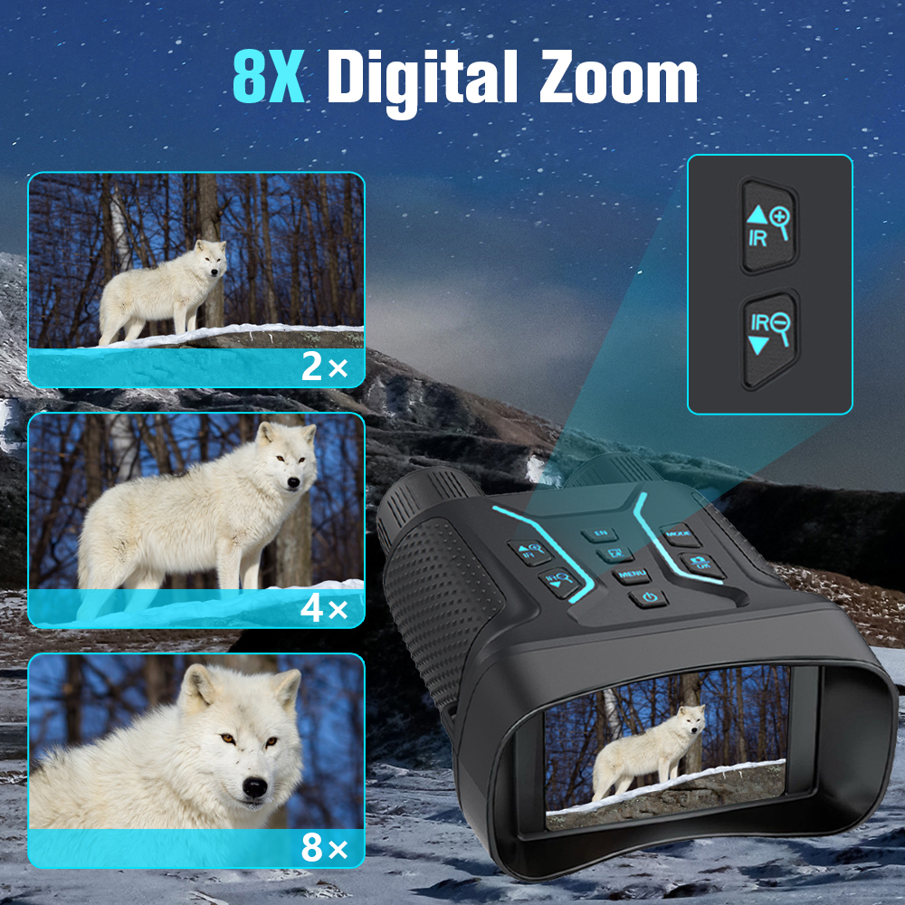 Denne nattekikkerten er utstyrt med 8x digital zoom, slik at du kan fange skarpe bilder av objekter langt unna. Uansett om det er for observasjon eller for å se på ville dyr, gir zoomfunksjonen bedre syn og forstørrelse.